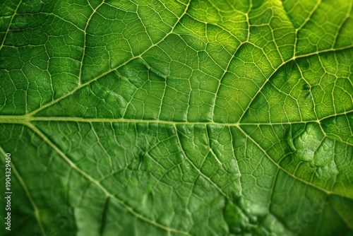 © juliars, Fototapeta premium Green leaf with visible veins creating a natural texture