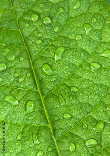 © Pawel Horazy, Fototapeta premium Green leaf with water droplets