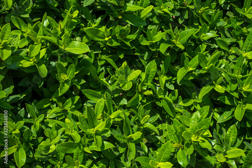 © Chalermpon, Obraz premium green leafs background and light outdoor.