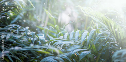 Obraz premium green leafs dark nature background