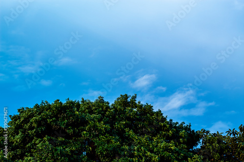 Obraz premium Green leafs on a blue sky