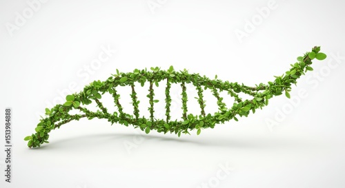 © gle, Naklejka premium Green leafy plant forming a biological DNA helix structure. Environmental conservation and sustainable natural energy concept.