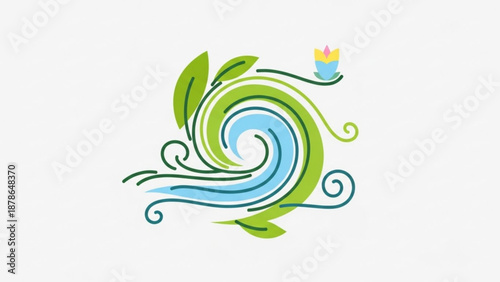 © Misbah, Fototapeta premium Green Leafy Swirl with Crown Isolated on White Background