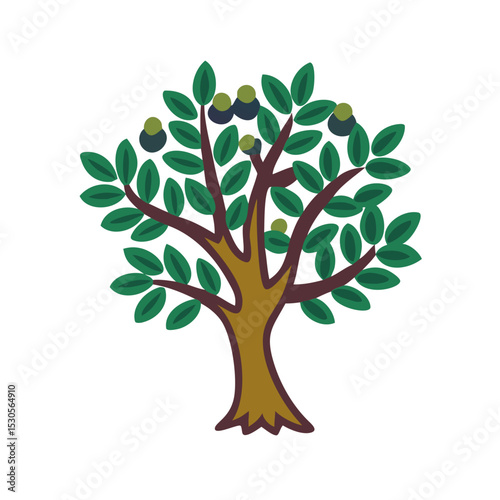 © Olga, Fototapeta premium Green leafy tree illustration on white