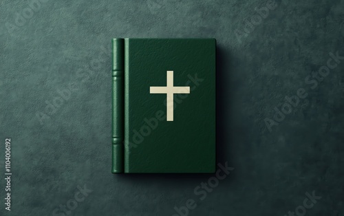 Fototapeta premium Green Leather Bible with Cross Design