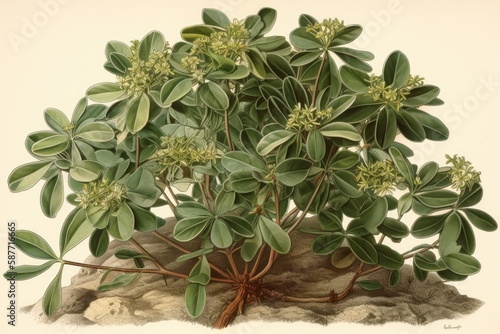Fototapeta premium green-leaved plant drawing. Generative AI