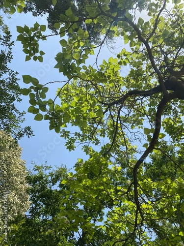 © Aminata, Obraz premium green leaves against sky