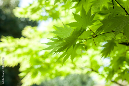 © chechotkin, Fototapeta premium green leaves against sky background