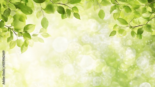 © Christopher, Naklejka premium Green Leaves and Bokeh Background Minimalist White Background with Space for Text