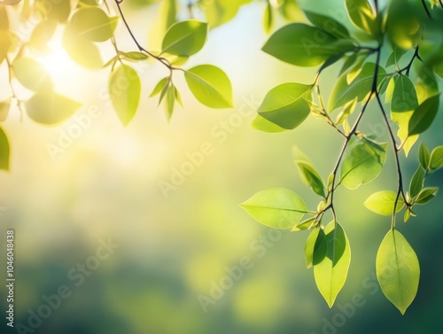 Obraz premium Green leaves and branches with a subtle sunlight effect