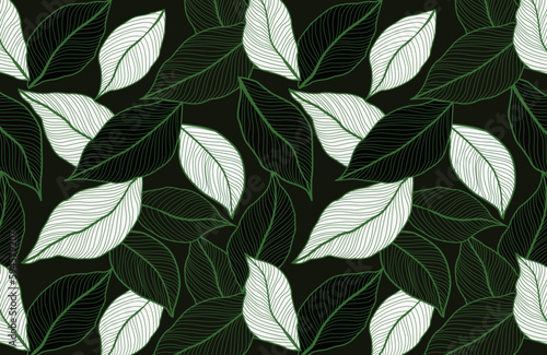 © Weerayuth, Fototapeta premium 012 Green leaves and seamless patterns on the dark background