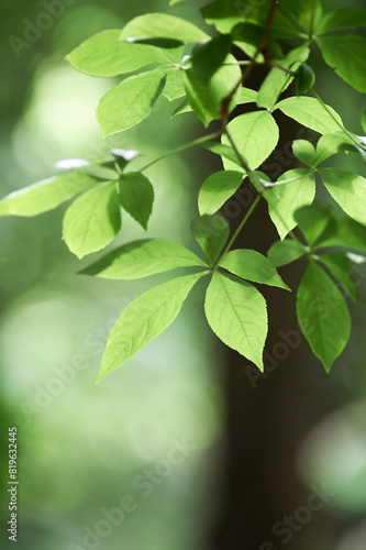 Obraz premium Green leaves background. Selective and soft focus. Copy space.