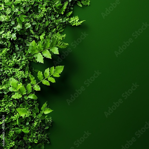 © kang_88_qp, Fototapeta premium Green leaves border on a green background, copy space.