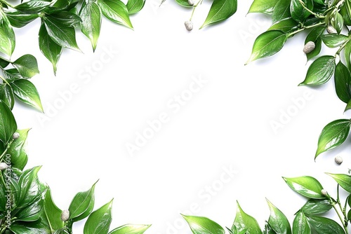 Obraz premium Green Leaves Border on White Background