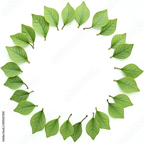 © GRAXO, Naklejka premium Green leaves circle border copy space area