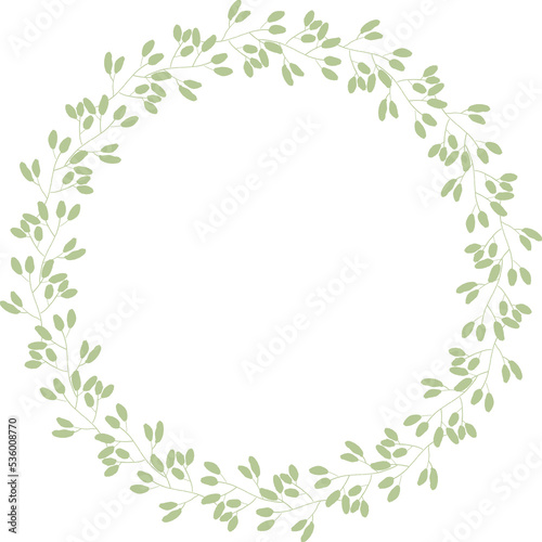 Obraz premium green leaves circle wreath frame flat style