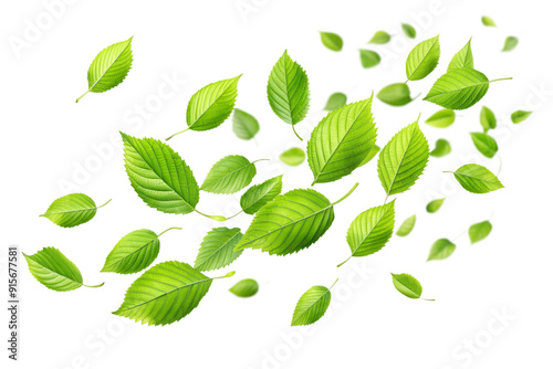 © Smithstar, Fototapeta premium Green leaves falling movement png