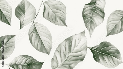 © NAIMAH, Fototapeta premium Green leaves, falling, white background, nature design, website banner