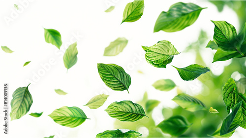 © Art.disini, Naklejka premium Green leaves flying in the air isolated on transparent background.