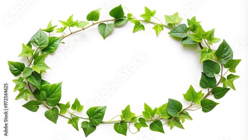 Fototapeta premium green leaves frame, Green Leaves Frame on Grey Background, Nature, Frame,...