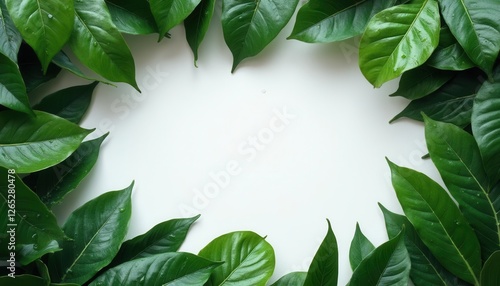 Fototapeta premium Green Leaves Frame on White Background - Natural Organic Style