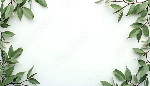 Naklejka premium Green Leaves Frame White Background Nature Photography