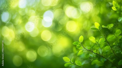 Obraz premium Green leaves glistening in sunlight create a vibrant backdrop in a serene...