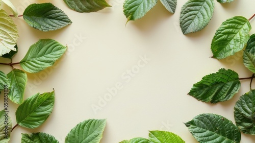 Naklejka premium Green leaves in circle on pastel background autumn design