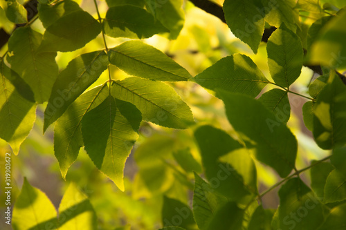 Fototapeta premium Green leaves in soft sunlight in the forest