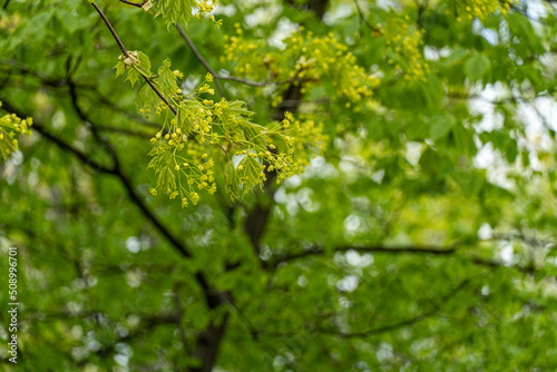 © m.fedotov, Naklejka premium green leaves in spring