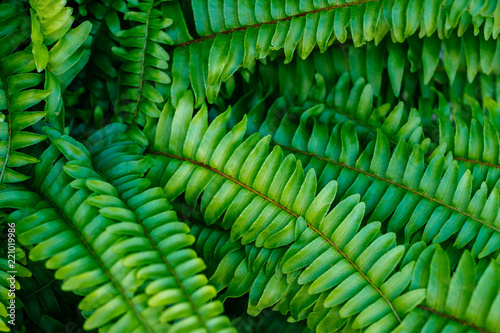 Fototapeta premium Green leaves in sunlight. Textured background of a tree.
