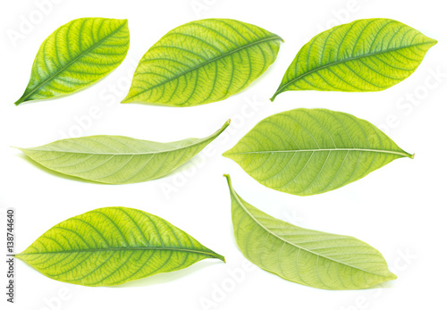 © showcake, Fototapeta premium Green leaves isolated on white background