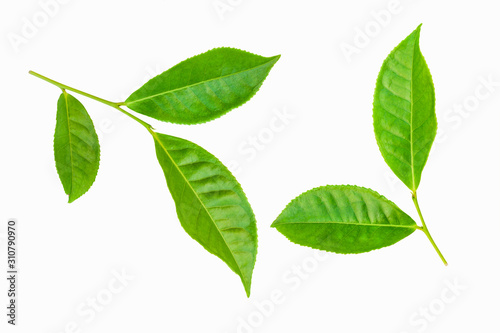 © Nabodin, Fototapeta premium green leaves isolated on white background for design elements, fresh green leaves