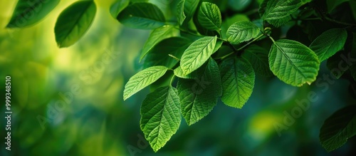 Fototapeta premium Green Leaves Of A Tree Close