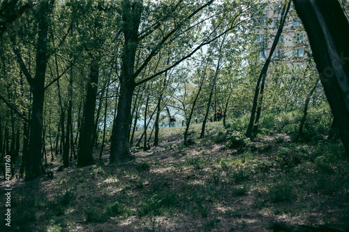 © Hennadii, Naklejka premium Green leaves of a tree in daylight in spring