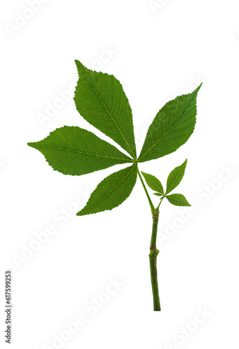 Obraz premium Green leaves of chestnut isolated on a white background.