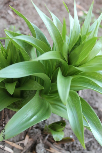 Obraz premium green leaves of crocuses in spring in the park