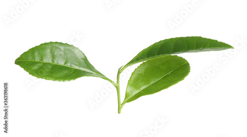 © New Africa, Fototapeta premium Green leaves of tea plant isolated on white