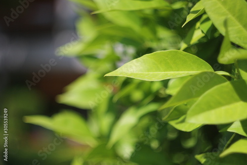 Fototapeta premium Green leaves on a blurred background