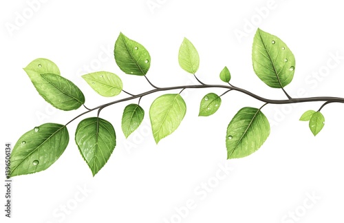 © Anyket, Fototapeta premium Green leaves on a branch, clipart with white background,