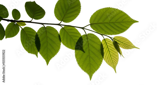 © 3D Demo Stock, Fototapeta premium Green leaves on a branch isolated on white background