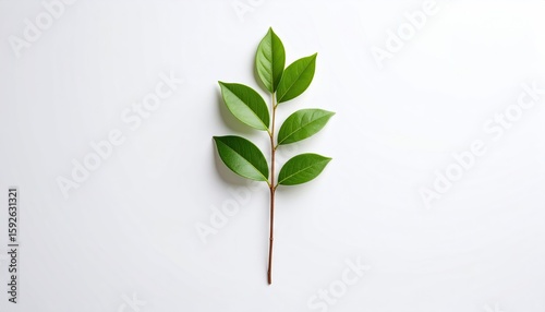 © Tumi, Fototapeta premium Green leaves on a stem, simple and clean design