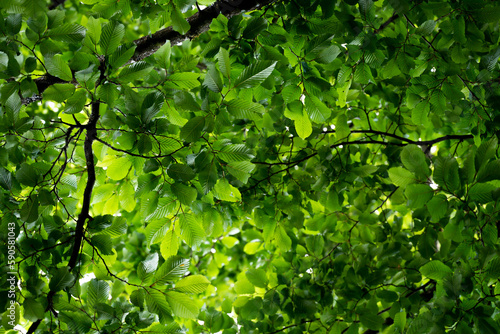 © Salvisberg, Naklejka premium green leaves on a tree with strong patterns and texture