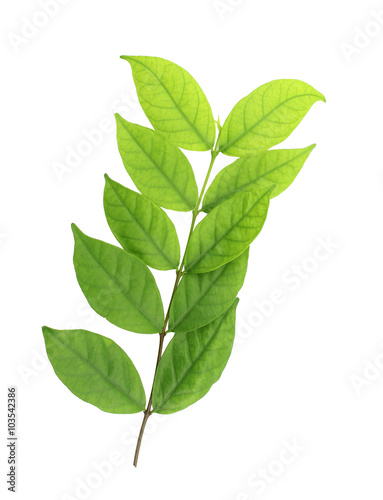 © jamroenjaiman, Fototapeta premium Green leaves on a white background.