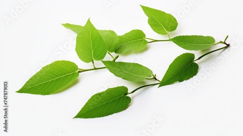 © Bushra, Obraz premium Green leaves on a white background