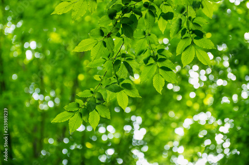 Obraz premium Green leaves over abstract background