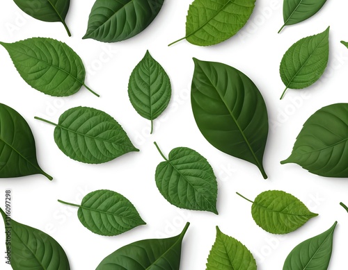 © Liang, Fototapeta premium Green Leaves Pattern on White Background