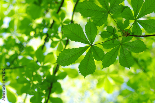 © Alekss, Fototapeta premium Green leaves plants nature spring background at