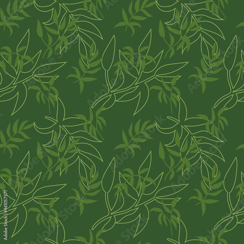 Obraz premium Green leaves seamless pattern background illustration vector design