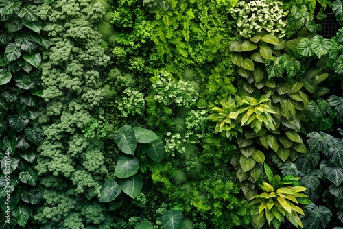 © Katsiaryna, Fototapeta premium Green leaves wall background. Green leaves wall texture pattern. Nature background